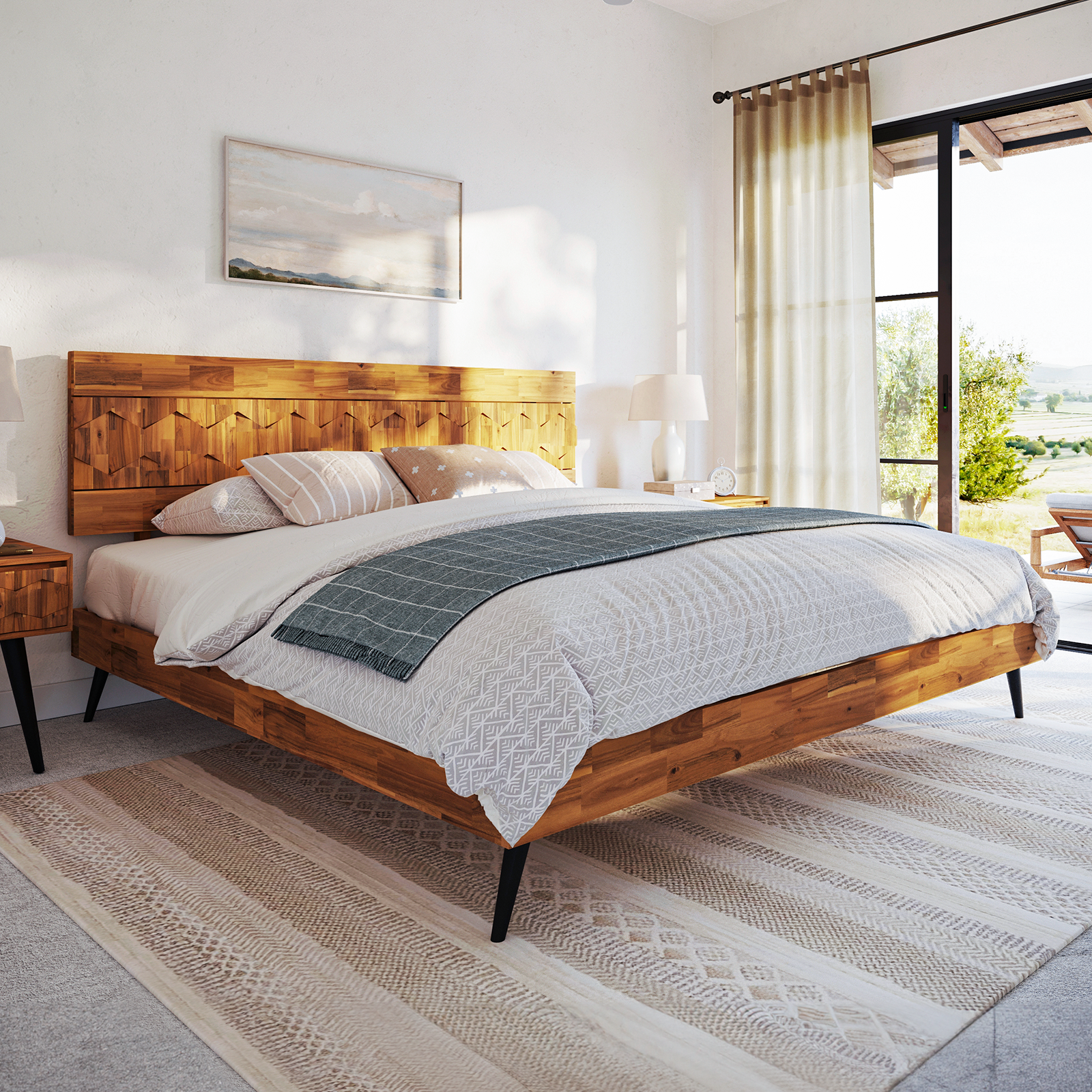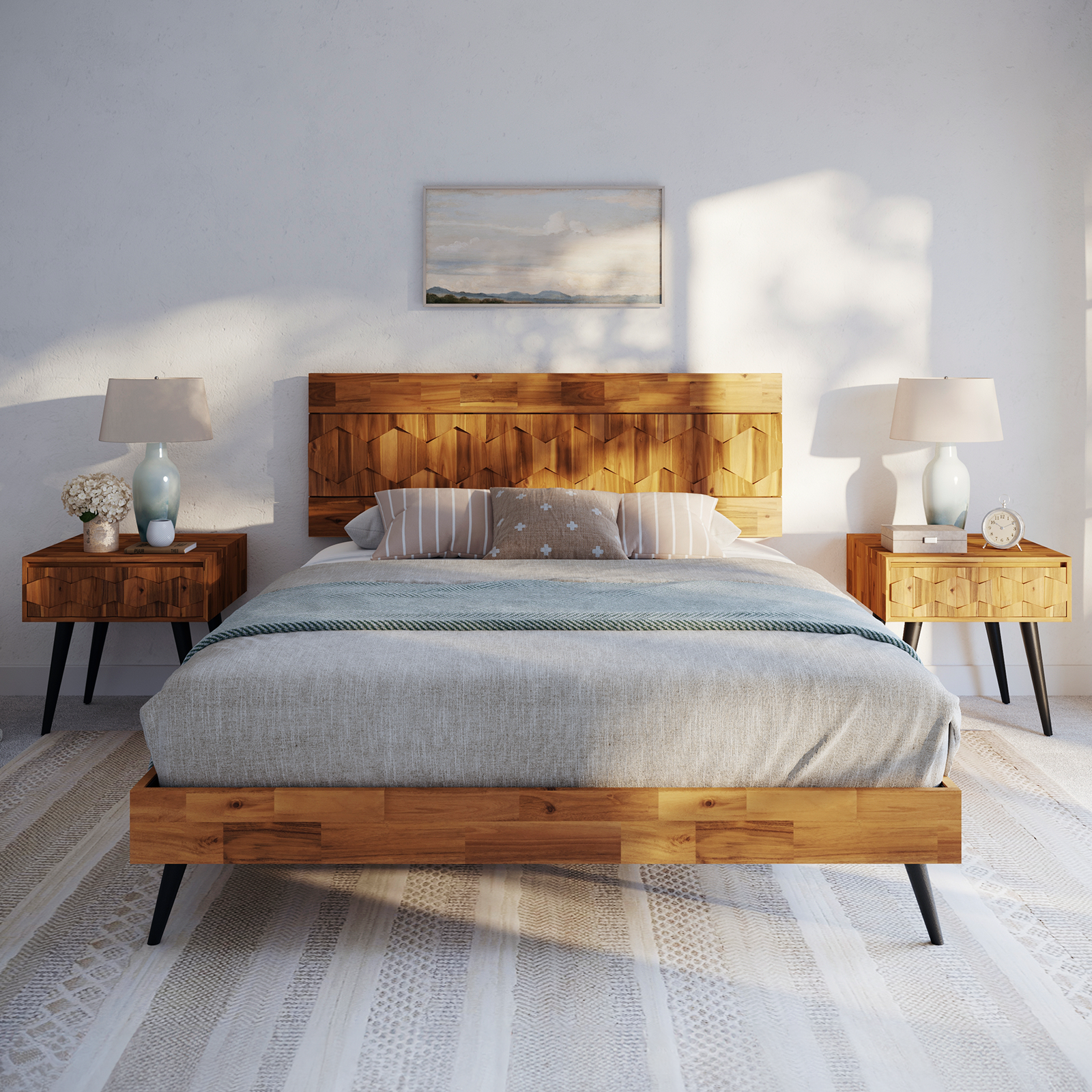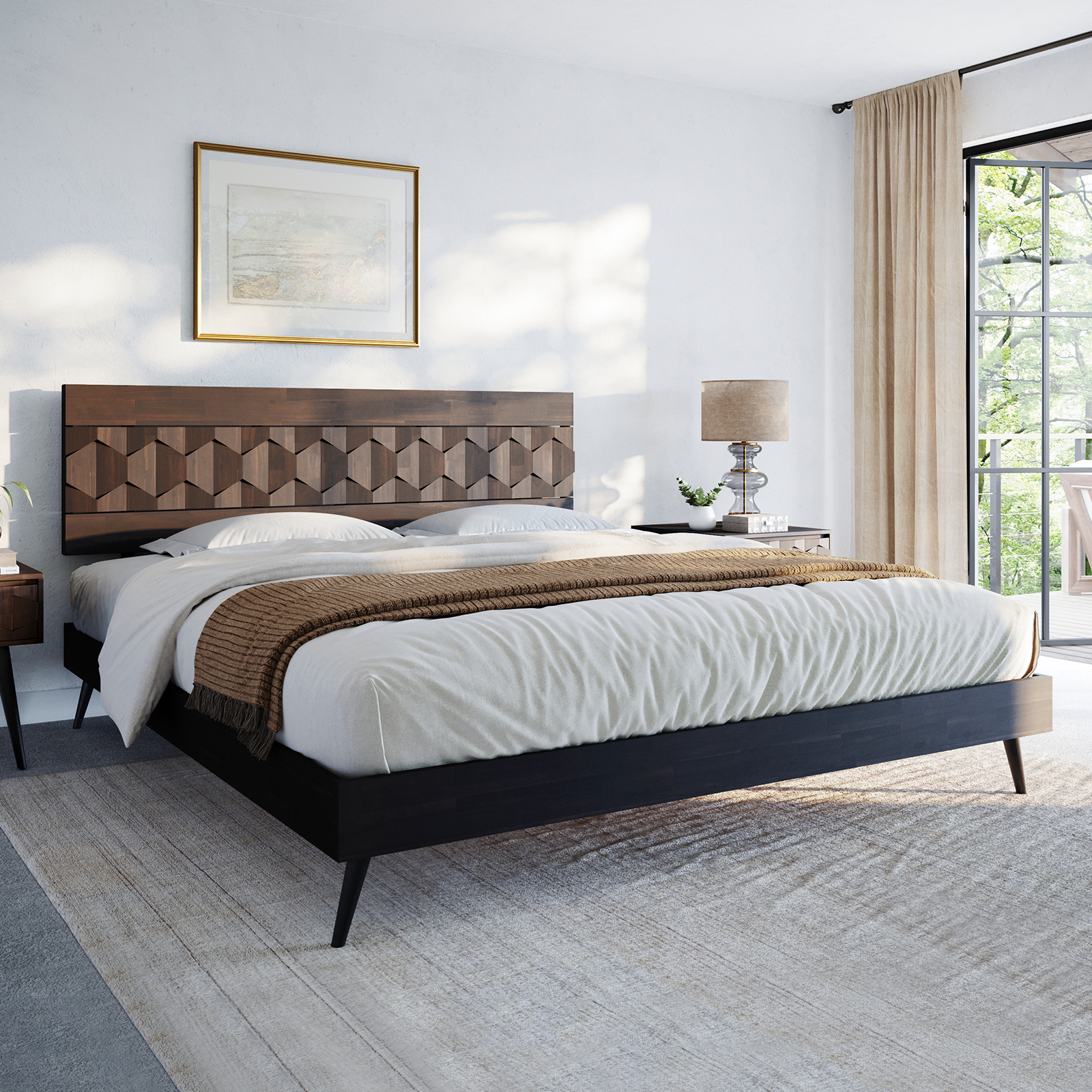 Bme Georgina Signature Bed Frame with Handcrafted Geometric Headboard