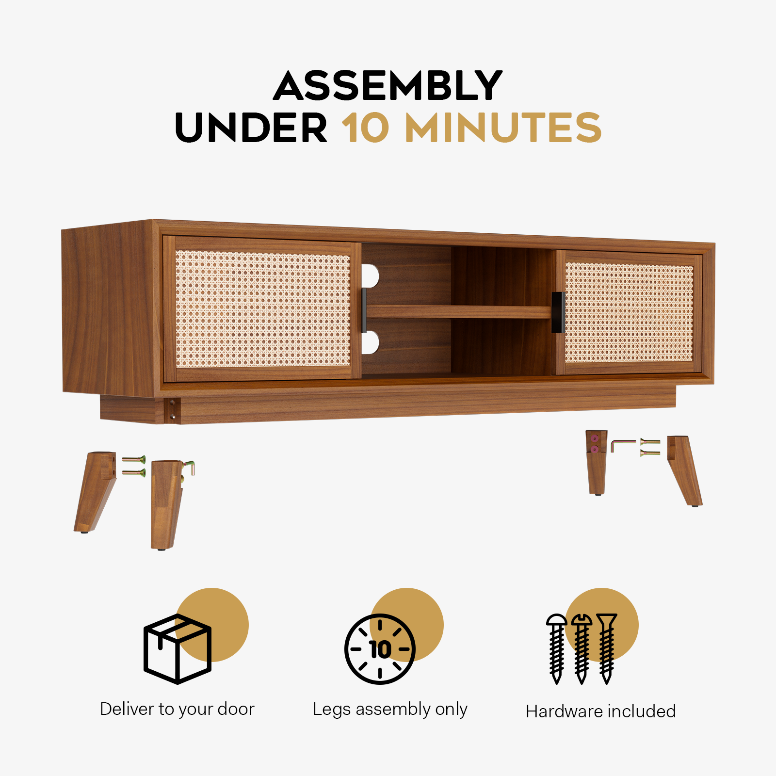BUILT TO LAST: Our solid wood TV stand, also functioning as a mid-century TV console stand, is the good addition to your living room. It comes complete with two beautiful rattan doors, adjustable and removable shelves for flexible storage, and a central open storage area, making it an ideal TV console table for your living room.