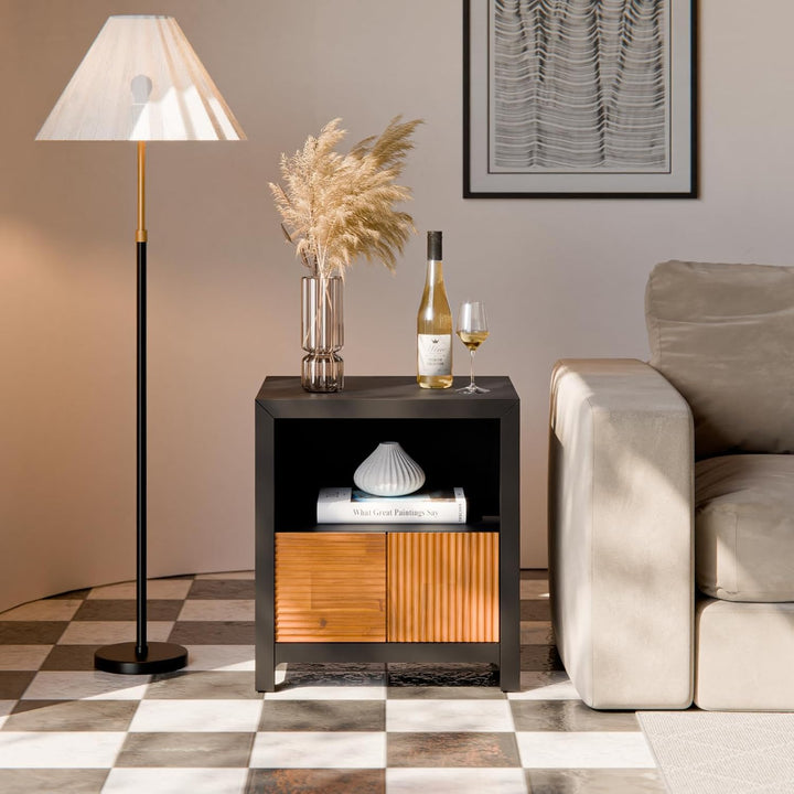 ELEGANT FLUTED BESIDE TABLE: The nightstand stands out with a meticulously crafted fluted design on the door, creating a rich visual texture that seamlessly integrates with both contemporary and classic decor, ideal for any bedroom setting.