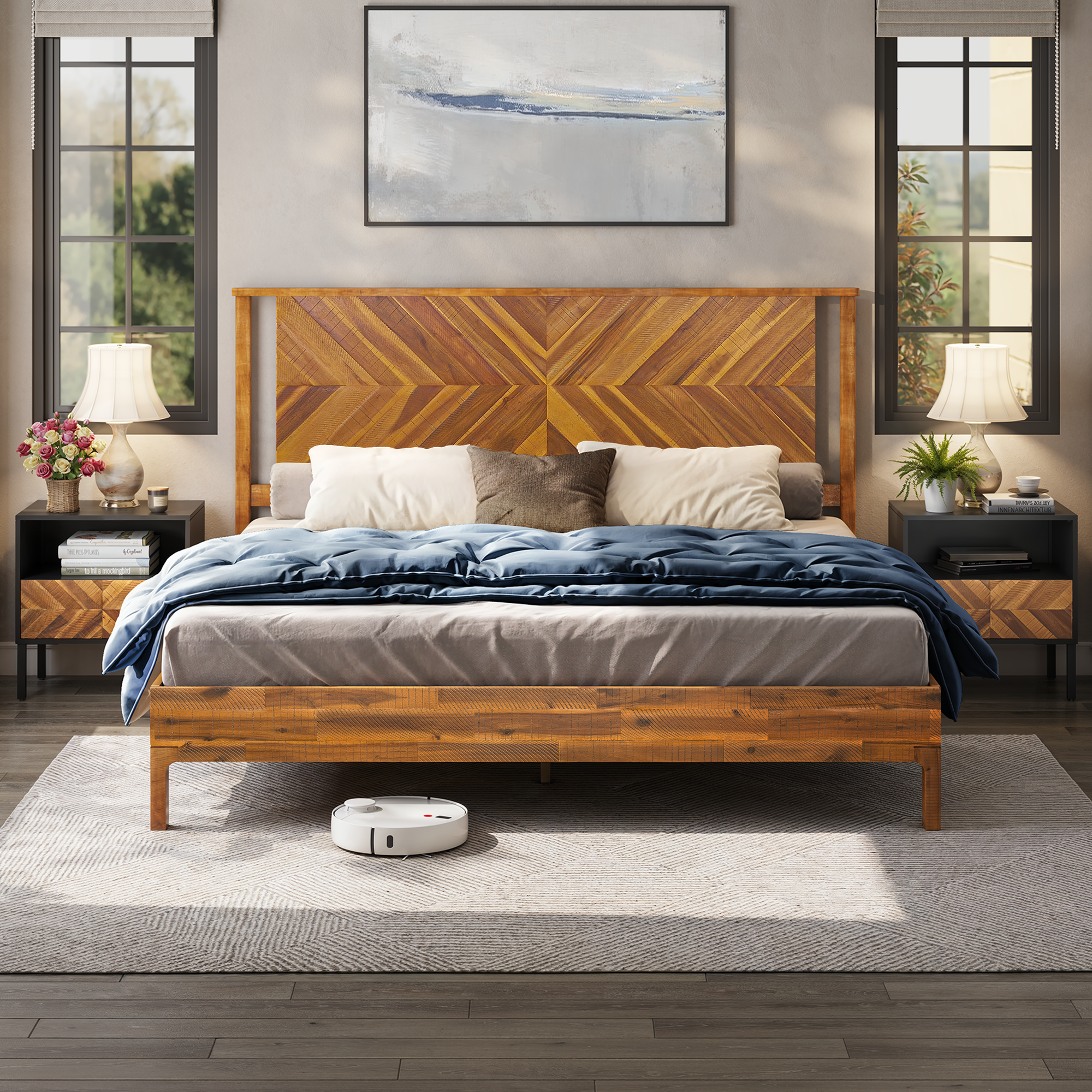 STURDY AND BEAUTIFUL: A durable, solid acacia wooden bed frame king with design lends optimal mattress support while a unique wood grain finish makes this foundation an impressive centerpiece for your master suite.